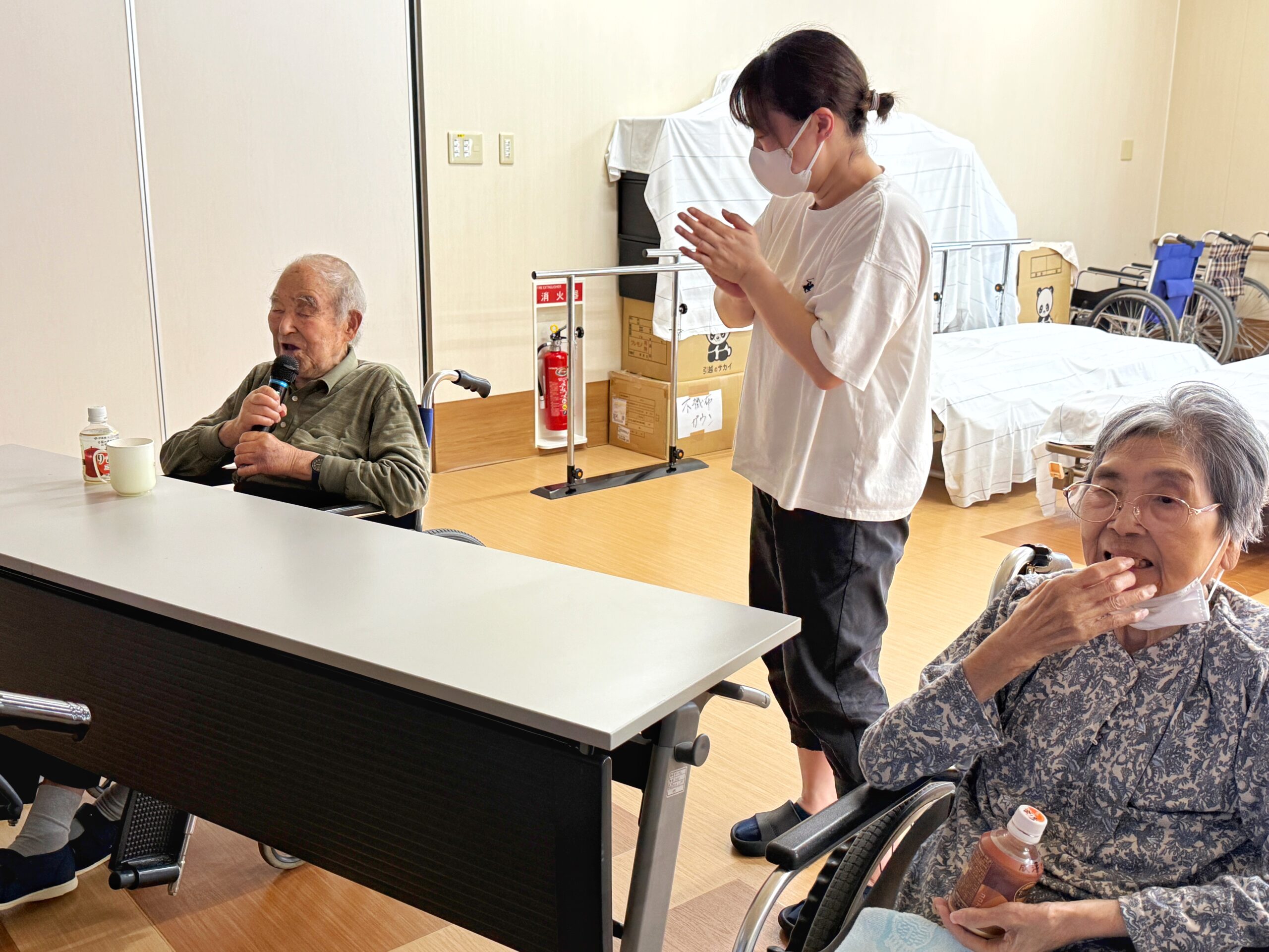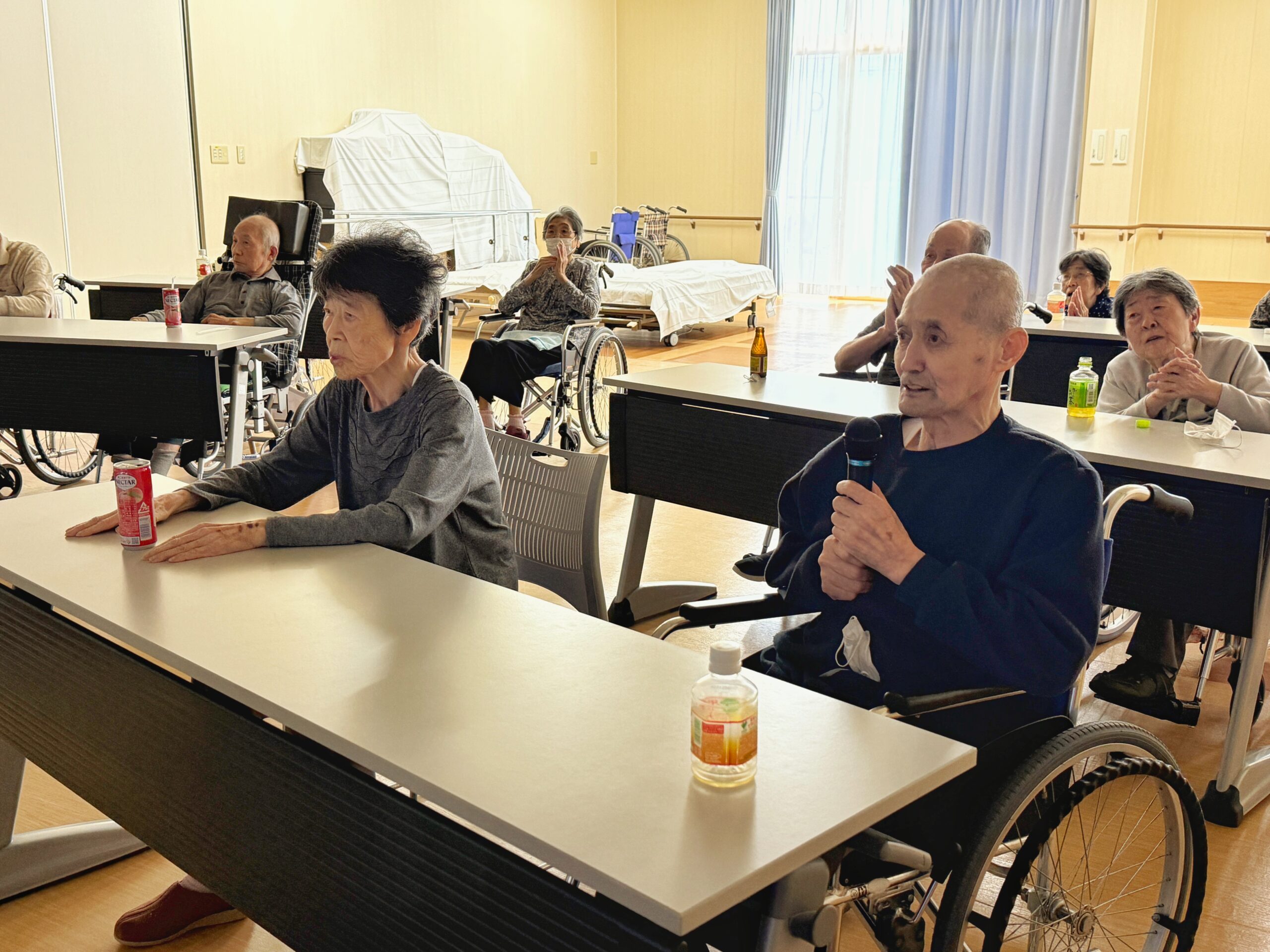大きな拍手で笑顔がこぼれる入居者様も。