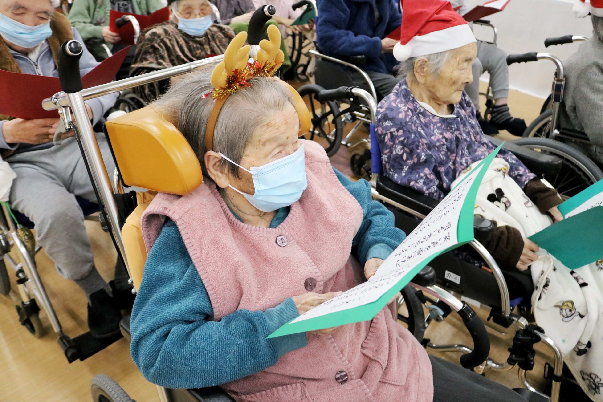入居者様は静かに耳を傾けたり、