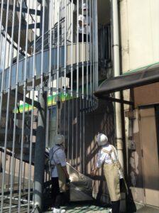 みなさん職員の声掛けに素早く反応され、スムーズに非常滑り台の前に避難することが出来ました。